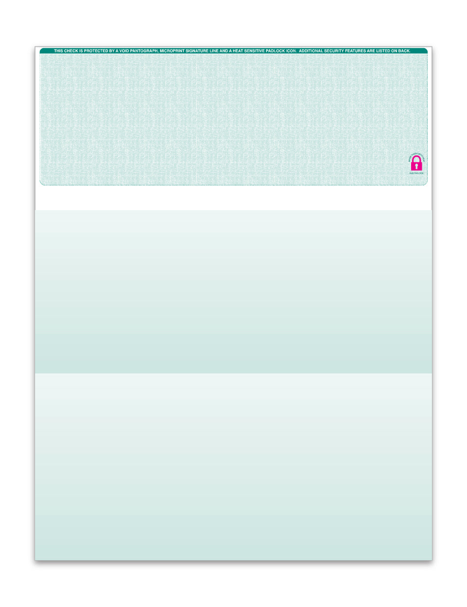 • 13 Security Features: Void Pantograph, Microprint Signature Line, Padlock Icon, Check Warning Borders, Security Back Printing, Thermochromic Padlock Icon, Coin Reactive Ink, Ghost Padlock Watermark Backer, Chemical Reactivity, Toner Adhesion, Fluorescent Fibers, Bleed Through Micr Numbers  & Bleed Through Red Arabic Numbers
