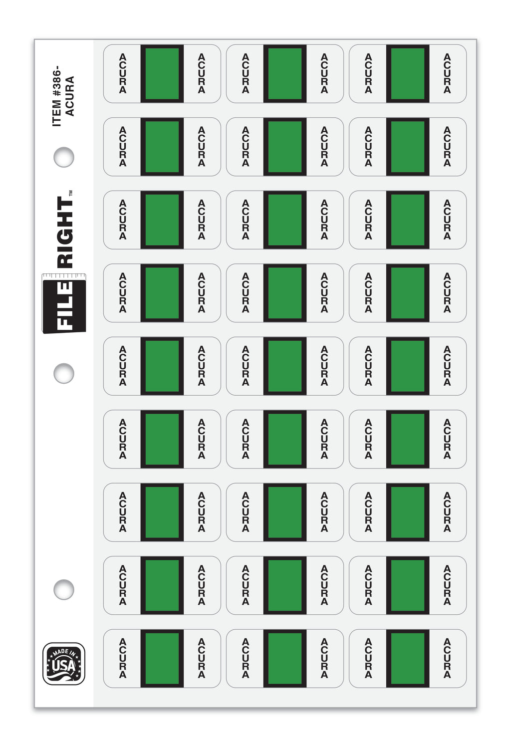 Color-Code Auto-Make ACURA, Ring Book, Pkg. of 270 labels | File Right Auto-Makes Labels