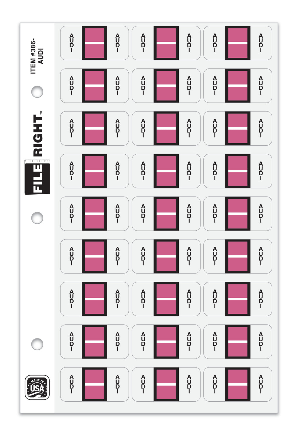 Color-Code Auto-Make AUDI, Ring Book, Pkg. of 270 labels | File Right Auto-Makes Labels
