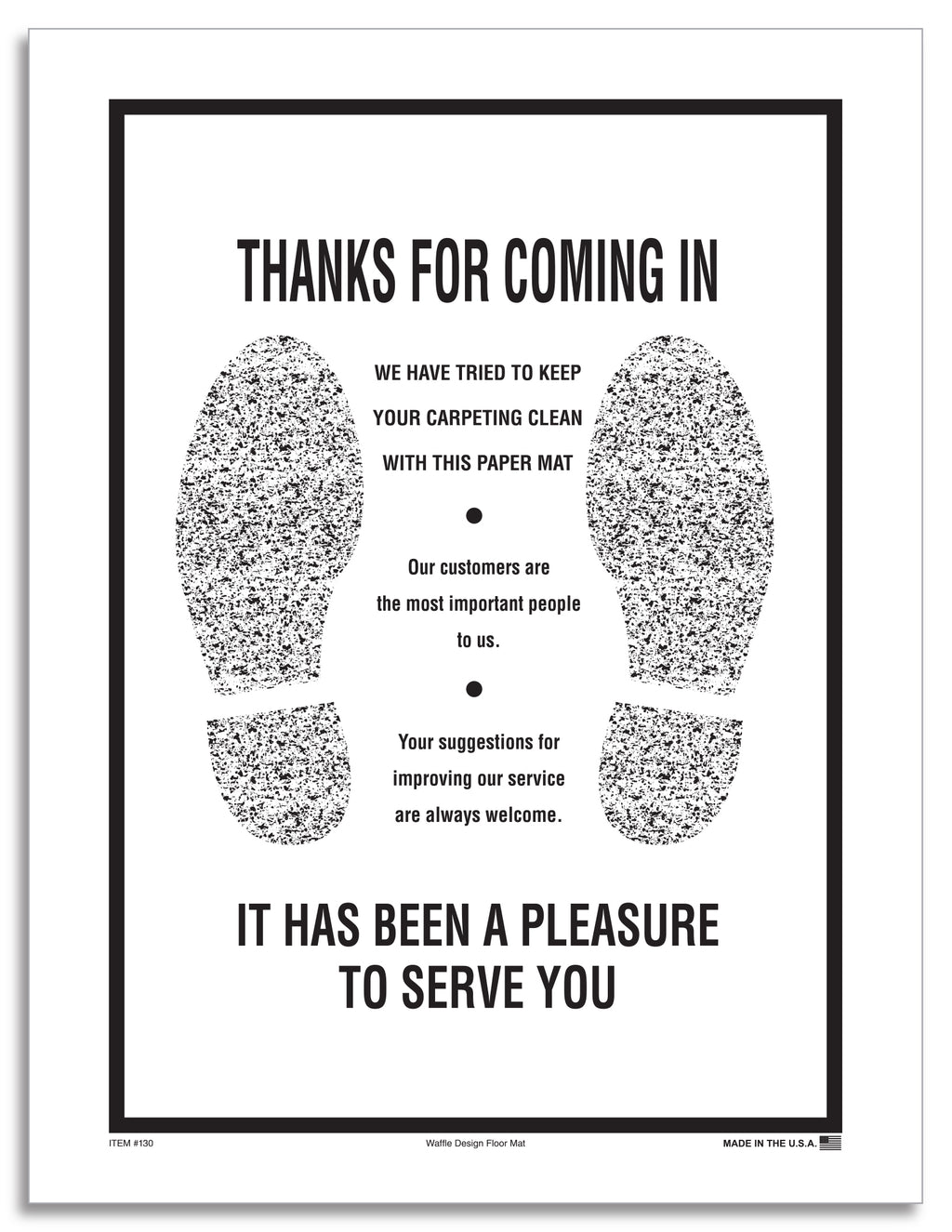 - Imprint: "Thanks for coming in - It has been a pleasure to serve you" - Footprints