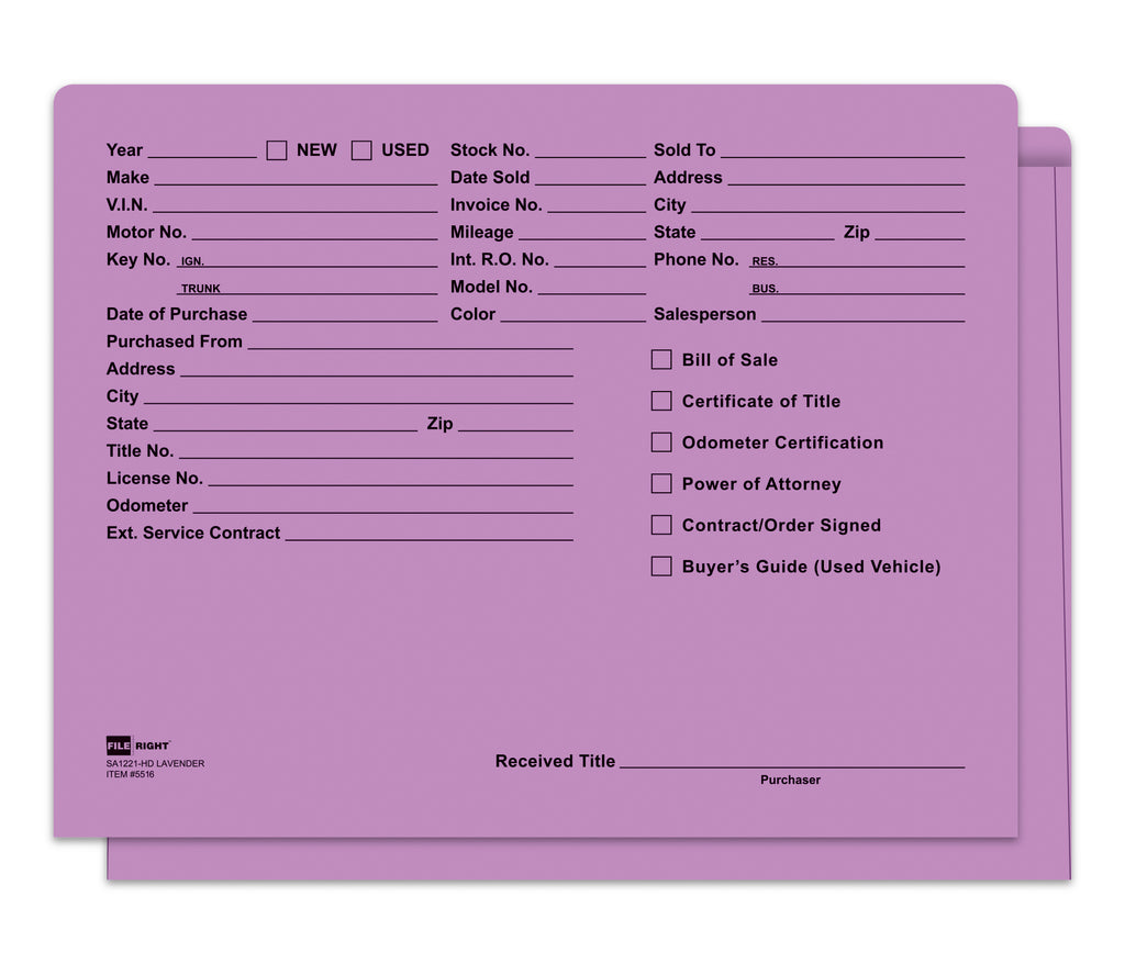 Heavy Duty Deal Jacket, Printed - SA1221-HD-LAVENDER - Box of 100 | Heavy Duty Deal Jackets - Printed