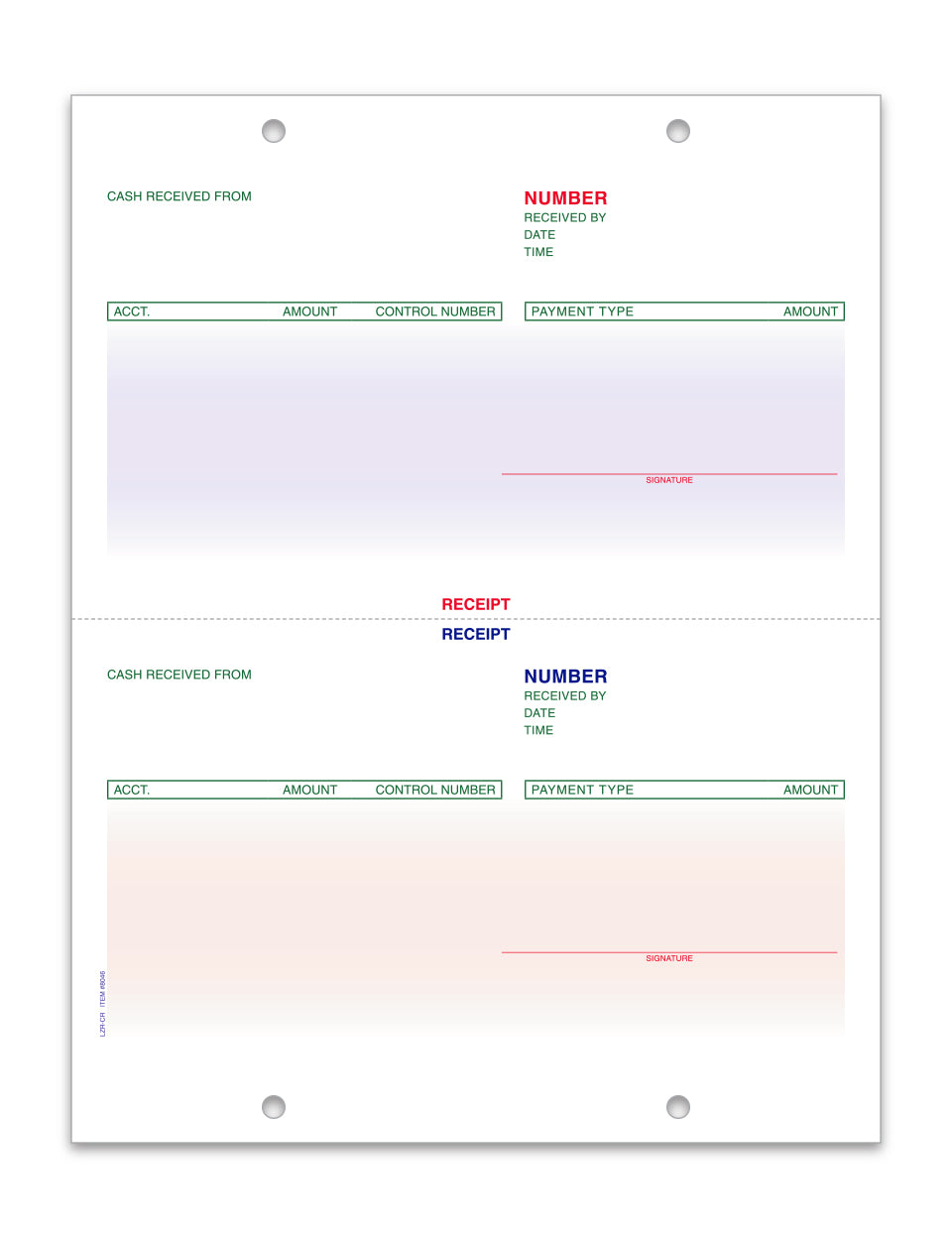 An economical alternative for laser printing cash receipts or purchase orders. May replace the pre-printed version of the parts invoice, cash receipt and purchase order forms.