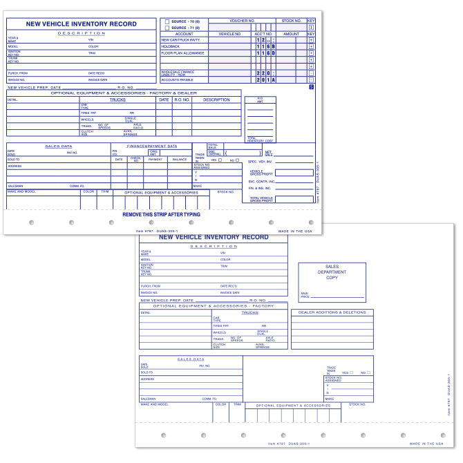 New Vehicle Record - DUAS-305-1 - 2 Part - Qty. 100
