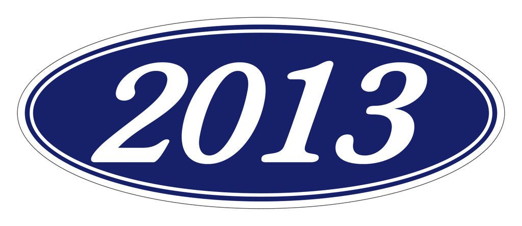 Oval Year Window Sticker - 2013 WHITE on BLUE - Qty. 12 | Oval Years