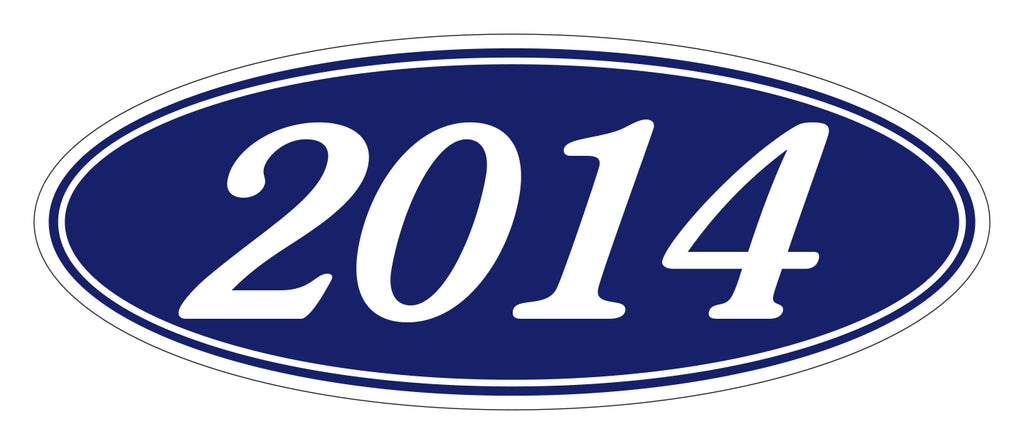 Oval Year Window Sticker - 2014 WHITE on BLUE - Qty. 12 | Oval Years