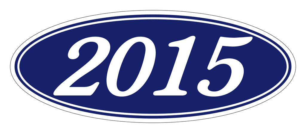 Oval Year Window Sticker - 2015 WHITE on BLUE - Qty. 12 | Oval Years