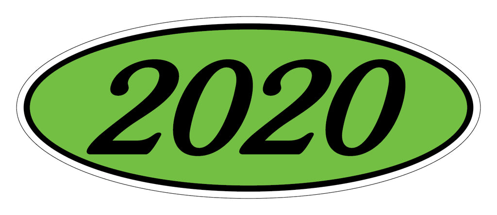 Oval Year Window Sticker - 2020 BLACK on GREEN - Qty. 12 | Oval Years