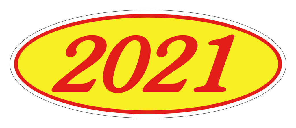 Oval Year Window Sticker - 2021 RED on YELLOW - Qty. 12 | Oval Years