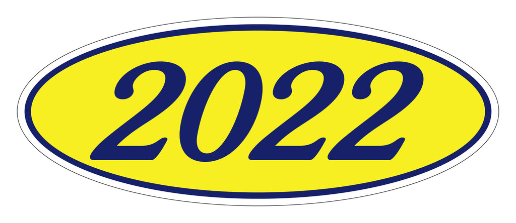 Oval Year Window Sticker - 2022 BLUE on YELLOW - Qty. 12 | Oval Years
