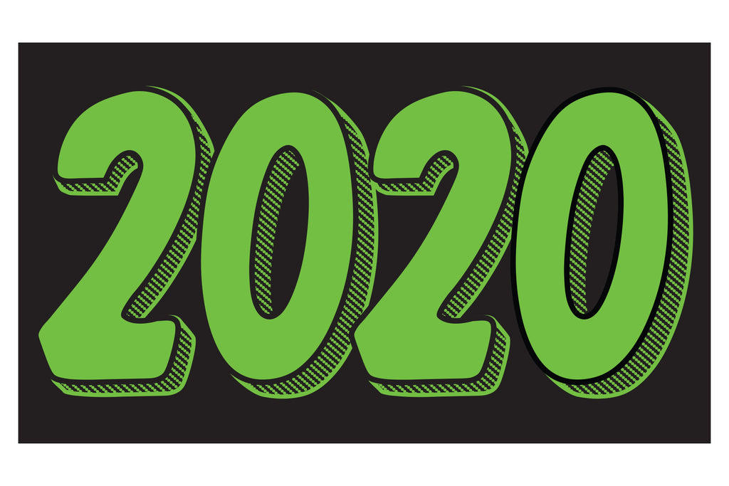 Rectangle Year Window Sticker - 2020 GREEN on BLACK - Qty. 12