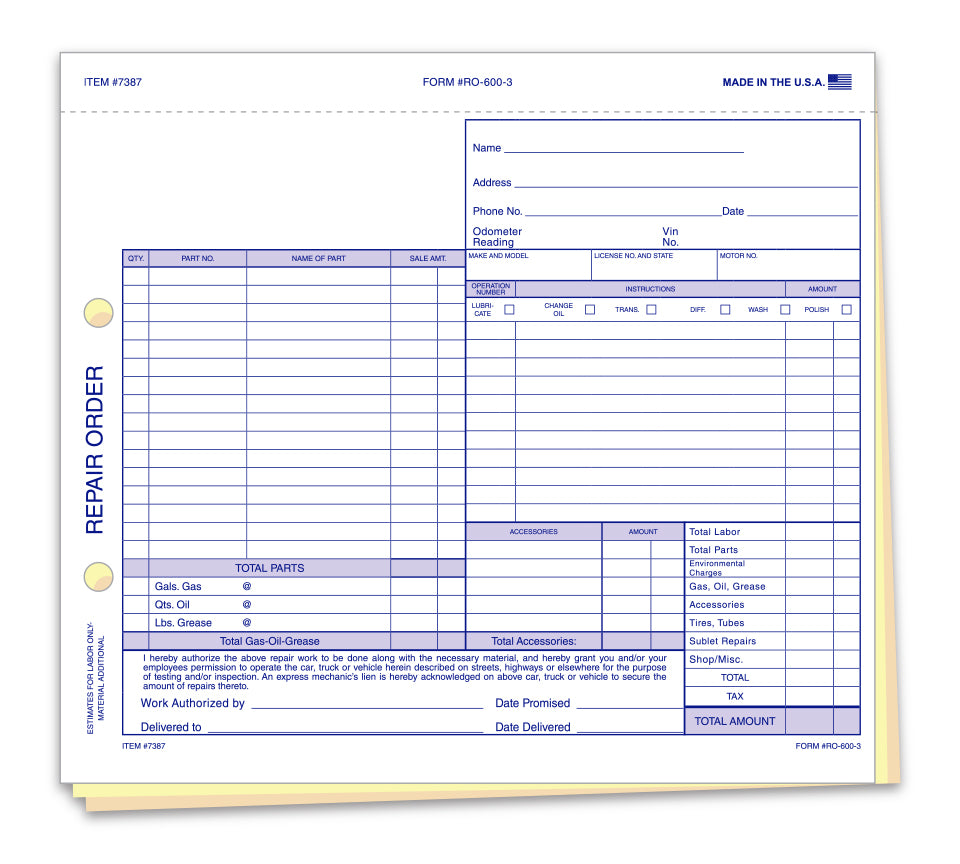 - 3-part, Carbonless, snap-out – White, Canary, Buff Tag