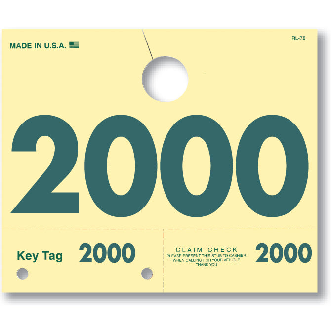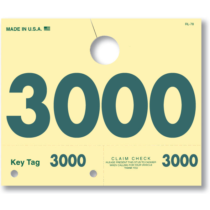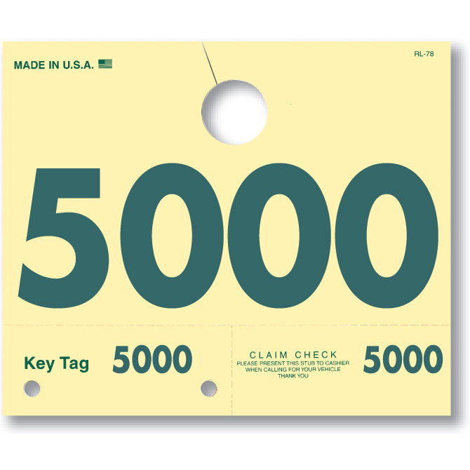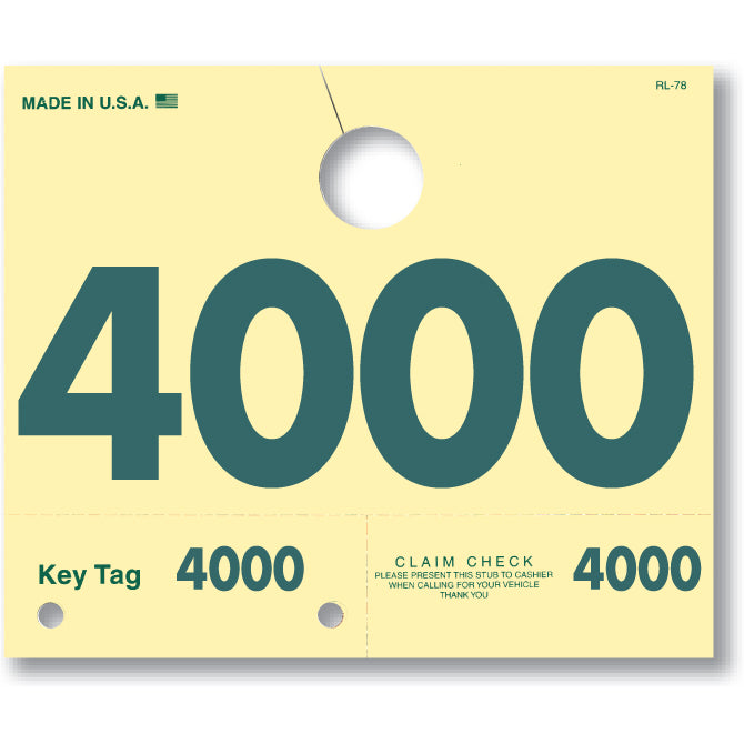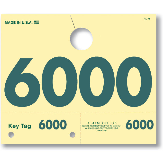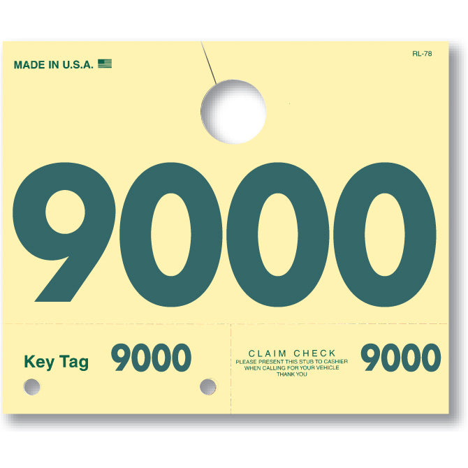 Large bold numbers, manila tag stock, back portion has service advisor, repair order number, customer, and license information.