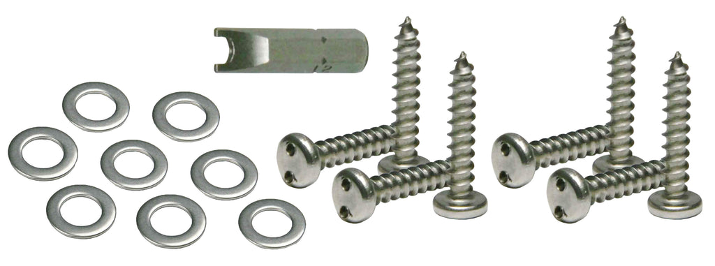 Keep your plates safe with this 17 piece tamper-proof mounting hardware kit.