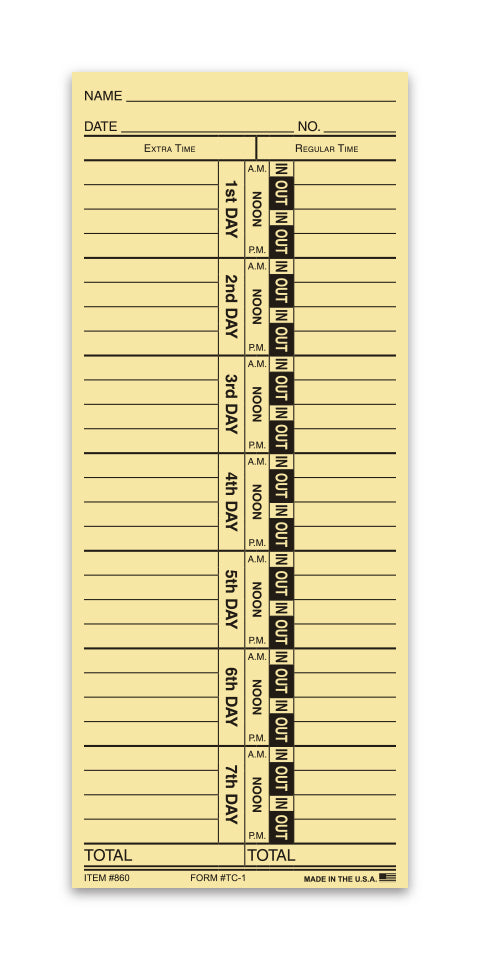 Time Clock Cards - TC-1 - Qty. 250