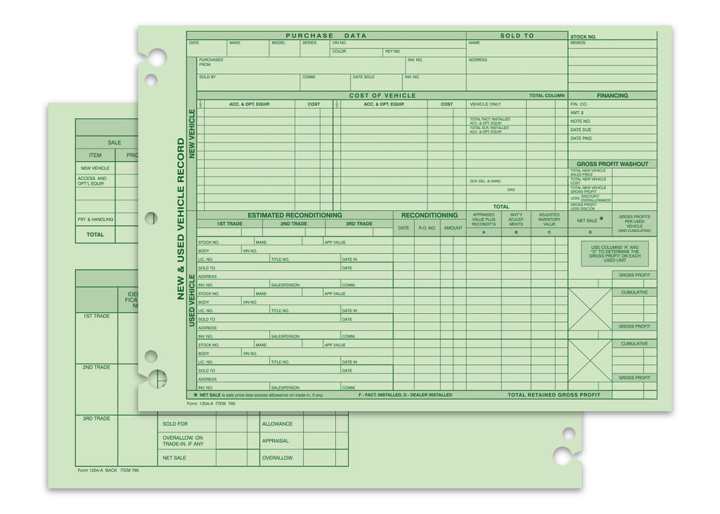 Vehicle Inventory Record - 1204-A - Qty. 50