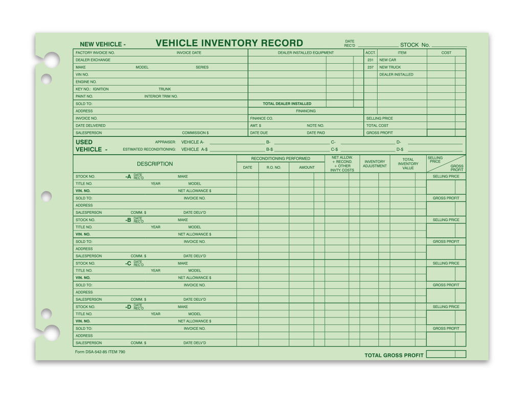 Vehicle Inventory Record - DSA-542-85 - Qty. 50
